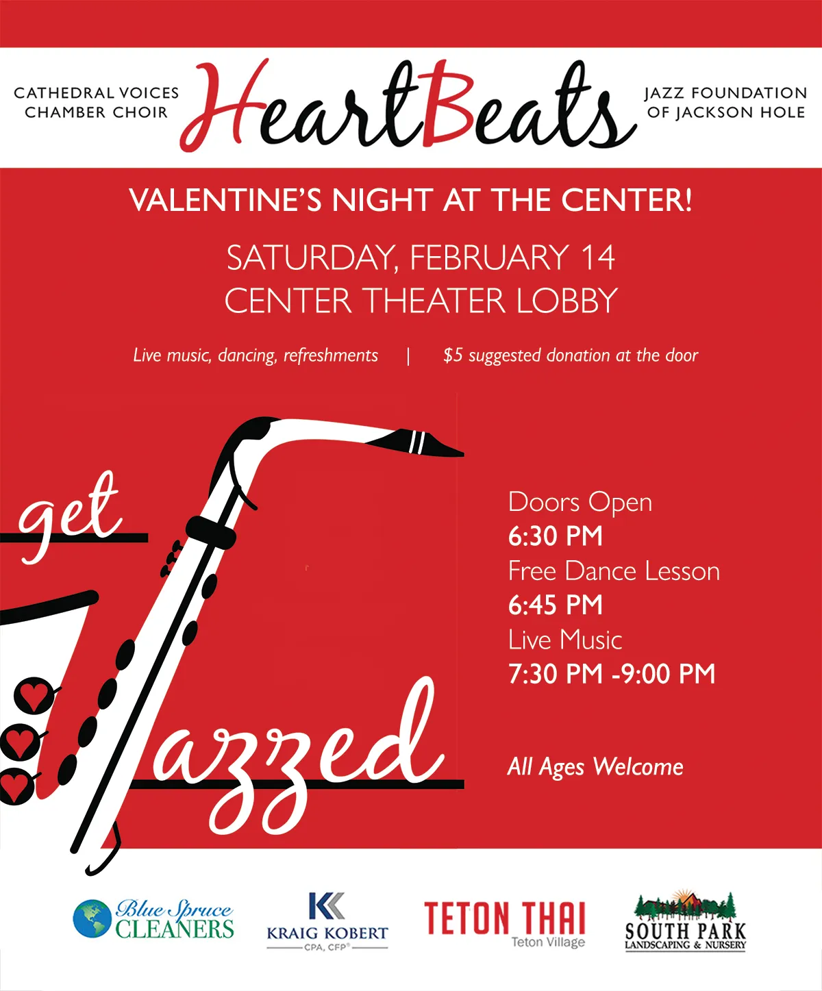 Your favorite midwinter big band, jazz, and swing night is here! Join The Jazz Foundation and Cathedral Voices for a special Valentine’s Edition of HeartBeats in the Center Theater Lobby. Dance to live music performed by the Jazz Foundation Big Band, along with some heartfelt melodies sung by Cathedral Voices.